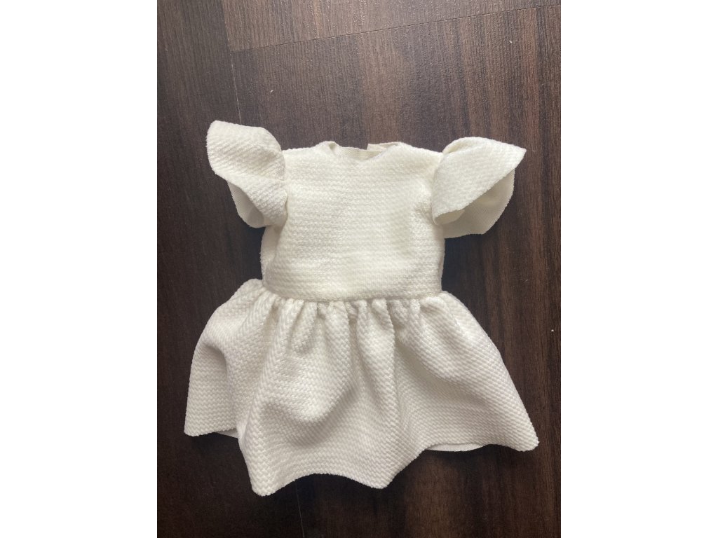 Béžové šaty s nariaseným volánikom a nariasenou sukničkou sú vhodné pre bábiky 32 cm veľké. Tieto nádherné, moderné šaty majú nariasenú sukničku a nariasený volanik okolo prieramku. Na zadnom diely je zapínanie na suchý zips.
