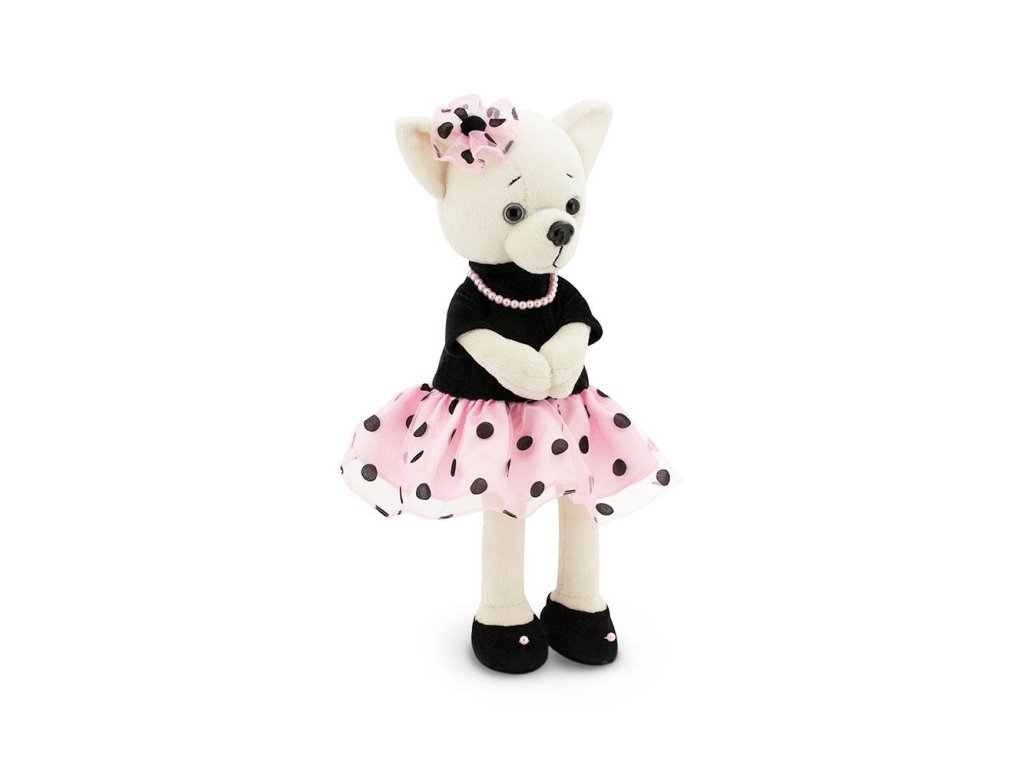 Biela čivava Lili má 38 cm a je to plyšový psík z lotyšskej firmy Orange Toys. patrí do kolekcie Lucky Doggy. Biela čivava má oblečené šaty s ružovou tylovou sukničkou s čiernymi bodkami doplnené čiernym topom. Na krku má ružové koráliky. Obuté má čierne topánočky s ružovou korálkou.