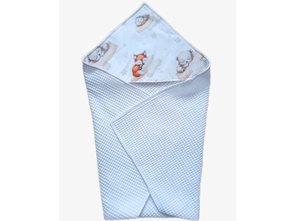 Detská osuška s kapucou waflová biela Spiace zvieratká