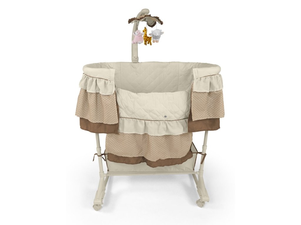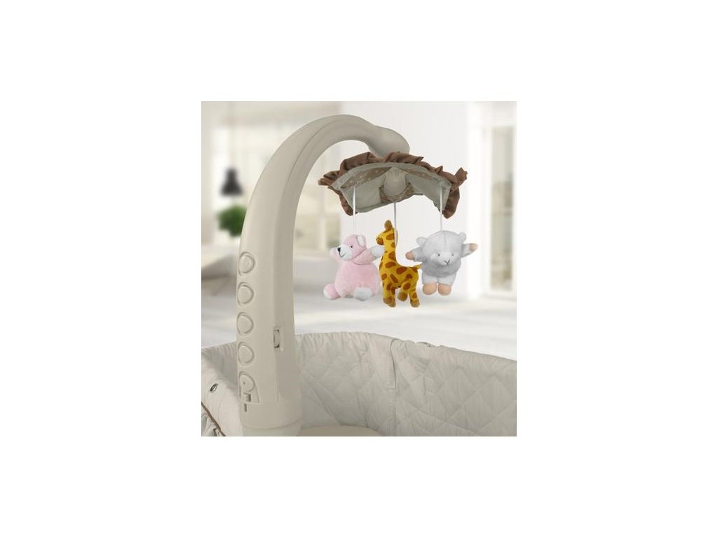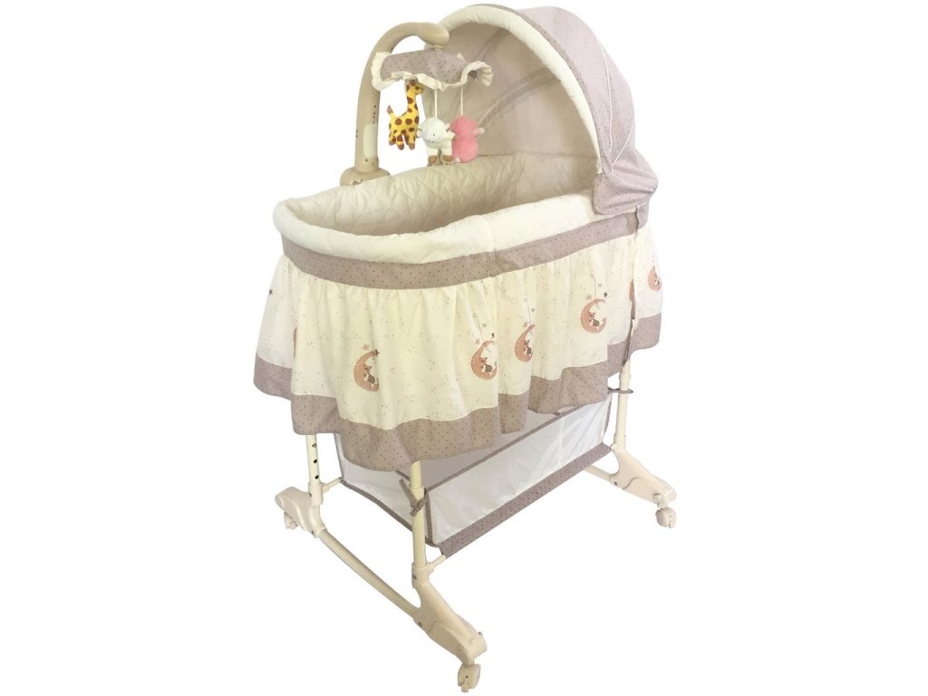 Charakteristika: - nastavenie výšky do 4 polôh - odnímateľná, regulovateľná strieška - kolotoč s veselými plyšovými hračkami, melódií a nočnou lampičkou - možnosť regulácie intenzity svetla lampičky a hlasitosti prehrávaných melódií - vrátane diaľkového ovládača pre ovládanie melódií a svetla - funkcia vibrácií - praktický kôš na plienky a ďalšie príslušenstvo pre bábätko - mäkká matrac súčasťou postieľky - vonkajšie dekorácie s volánikom - sťahovacia bočnica pre ľahšie prebaľovanie bábätka - poťah možno prať v práčke - vhodná pre bábätká do 6 mesiacov (8 kg) - Rozmery: dĺžka: 87cm, šírka: 47cm, hĺbka: 27cm, výška: 135cm (regulovateľná) rozmer matraca: dĺžka cca 79 cm, šírka cca 41 cm Napájanie kolotoče zaisťujú 3 batérie typu C (nie sú súčasťou)