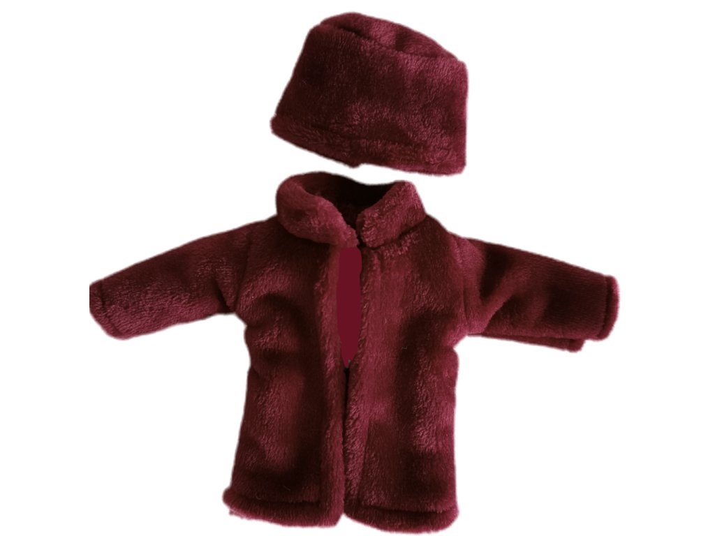 Kožuch pre bábiku bordový s čiapkou Little Fantasy