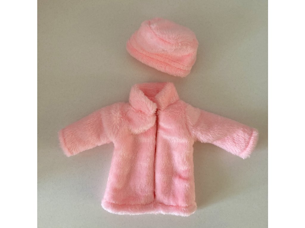 Ružový kožuch s čiapkou pre bábiku 32 cm.