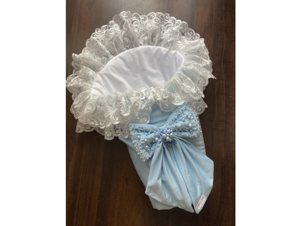 Luxusná zavinovačka Little Fantasy modro biela s čipkou a s perličkami