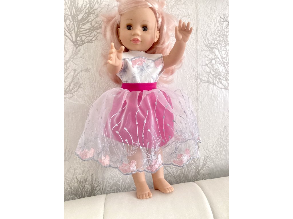 Elegantný set pre bábiku zahŕňa biely čipkovaný top s jemnými detailmi, ktorý dodáva oblečeniu nádych vintage štýlu. Top je doplnený o nariasenú sukňu, ktorá pôsobí vzdušne a hravo. Čipka na tope zvýrazňuje jemnosť a ženskosť, zatiaľ čo sukňa dodáva objem a pohyb. Ideálne oblečenie pre bábiku na špeciálne príležitosti, fotenie alebo ako súčasť zbierky štýlových modelov.