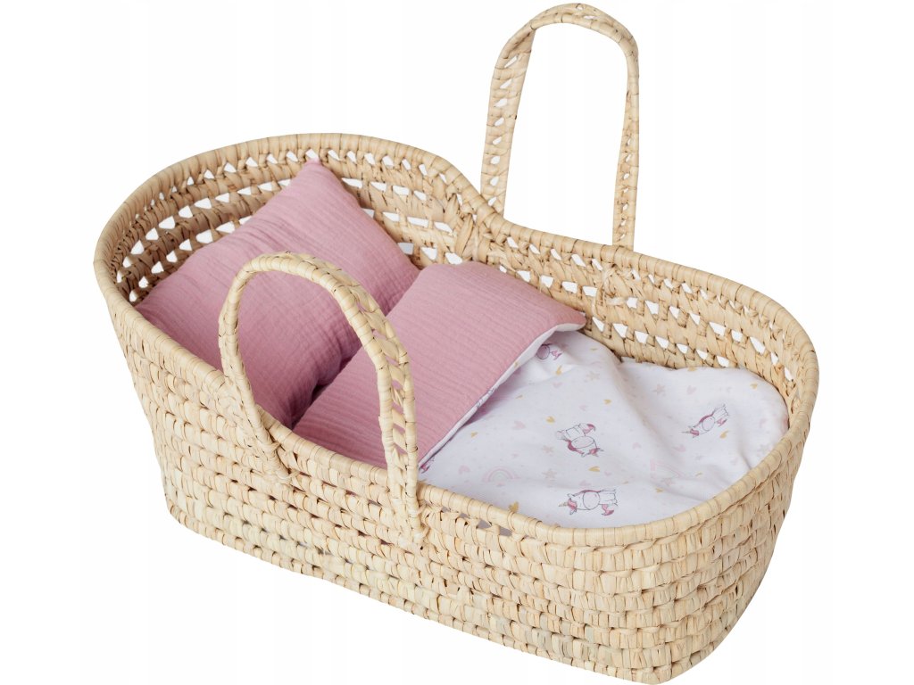 Prútený stredný mojžišov kôš s perinkami pre bábiku Antonio Juan