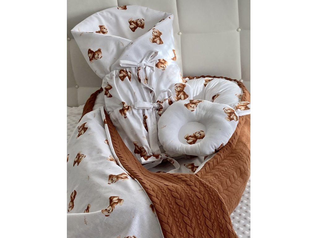Doprajte svojmu bábätku maximálne pohodlie, bezpečie a štýlový dizajn s exkluzívnym Setom 4v1 Little Fantasy – Medvedík s pleteninou. Kombinácia jemnej bavlny a kvalitnej pleteniny vytvára mäkké, hrejivé a útulné prostredie, v ktorom sa bude vaše dieťatko cítiť spokojne od prvých dní života.