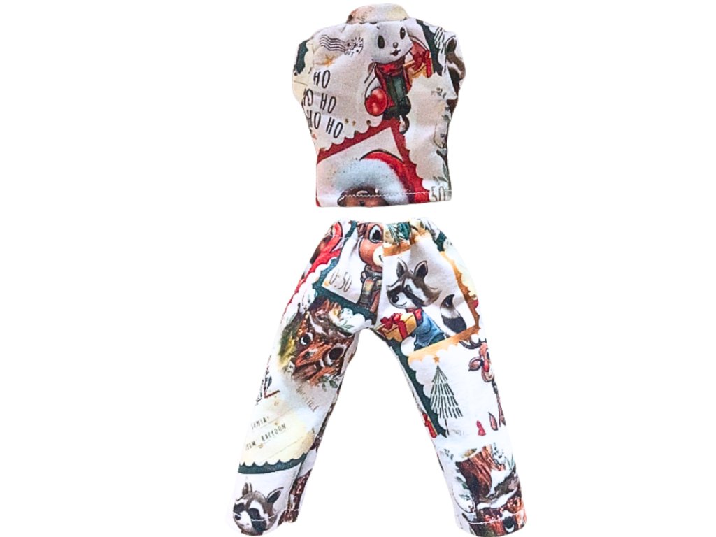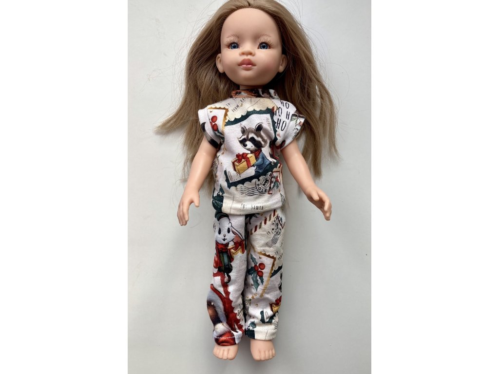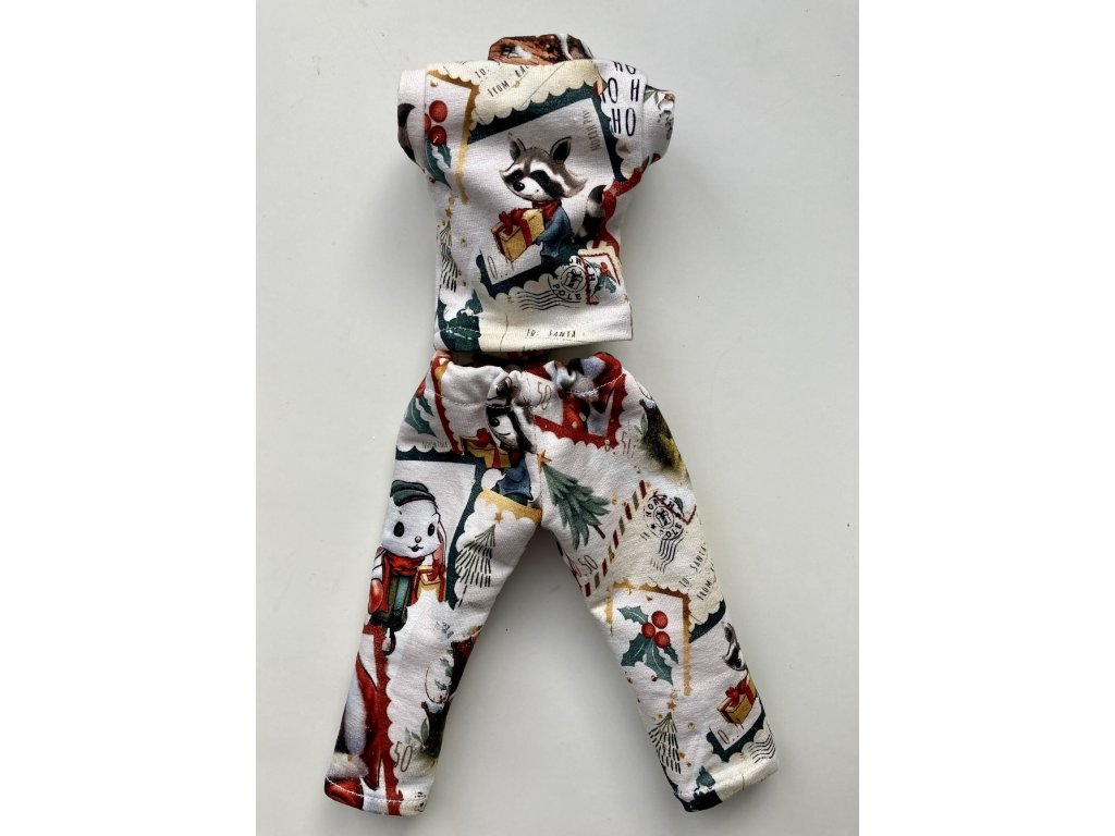 Vianočné oblečenie pre 32 cm bábiku Paola Reina sa skladá z 2 častí. Vrchný diel má stojačik a zapínanie vzadu na suchý zips a spodný diel sú dlhé nohavice v páse na gumičku.