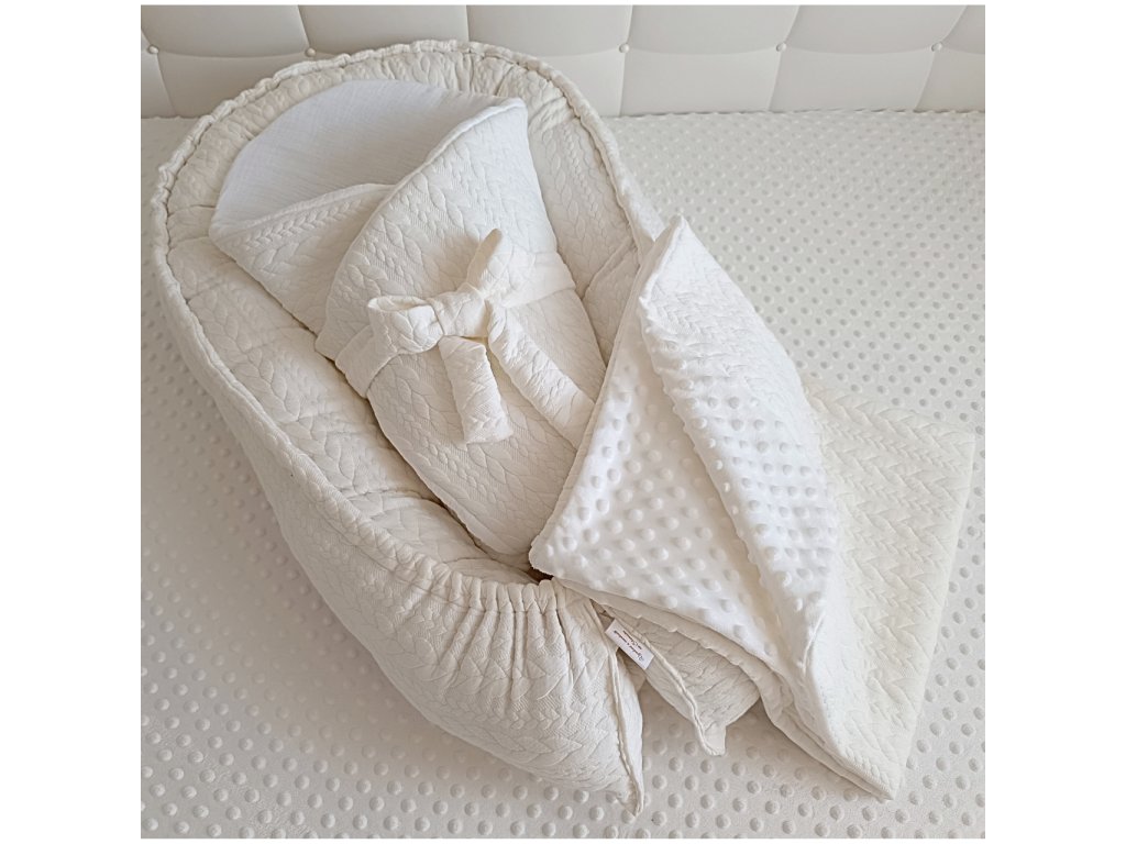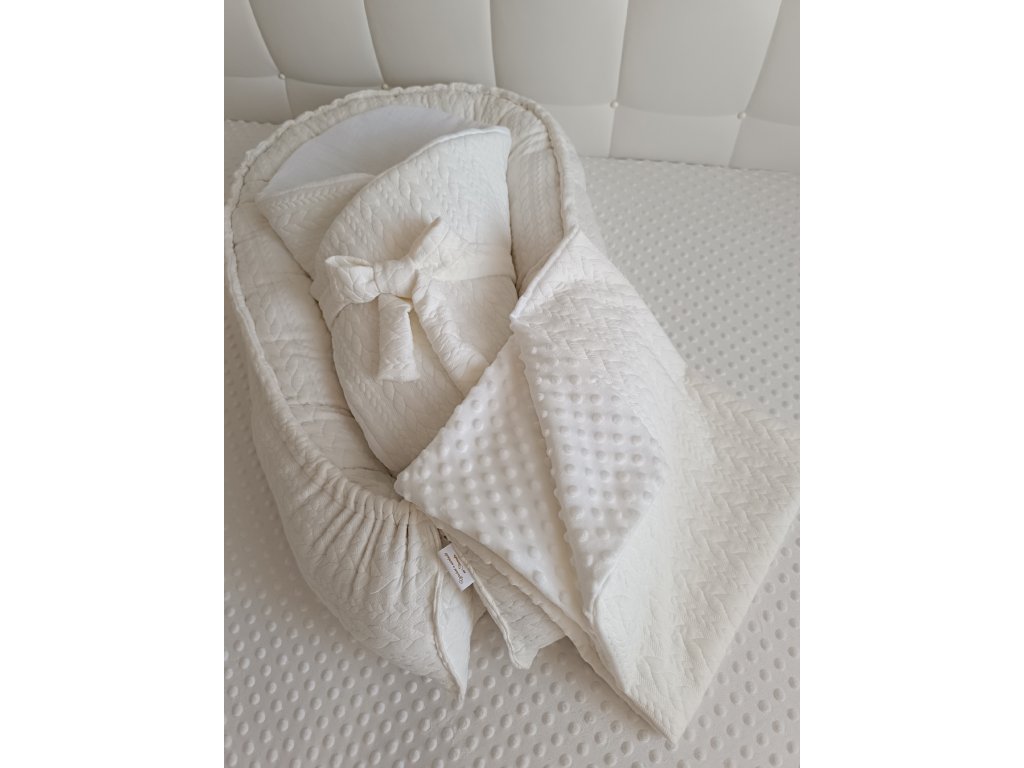 Výbavička pre bábätko 3 v 1 – hniezdo, zavinovačka s mašľou a detská deka
