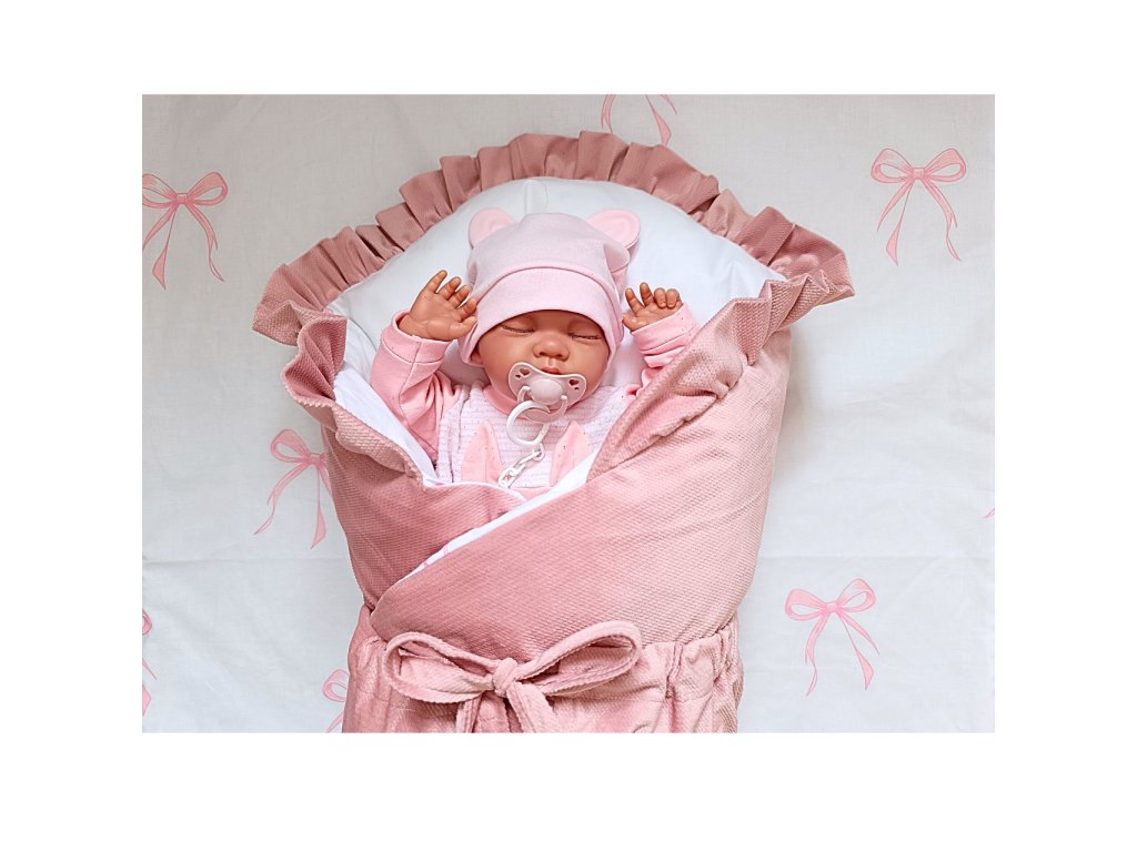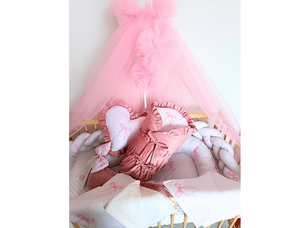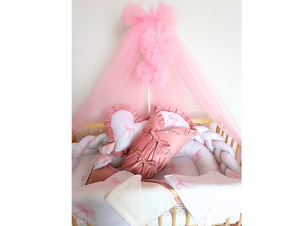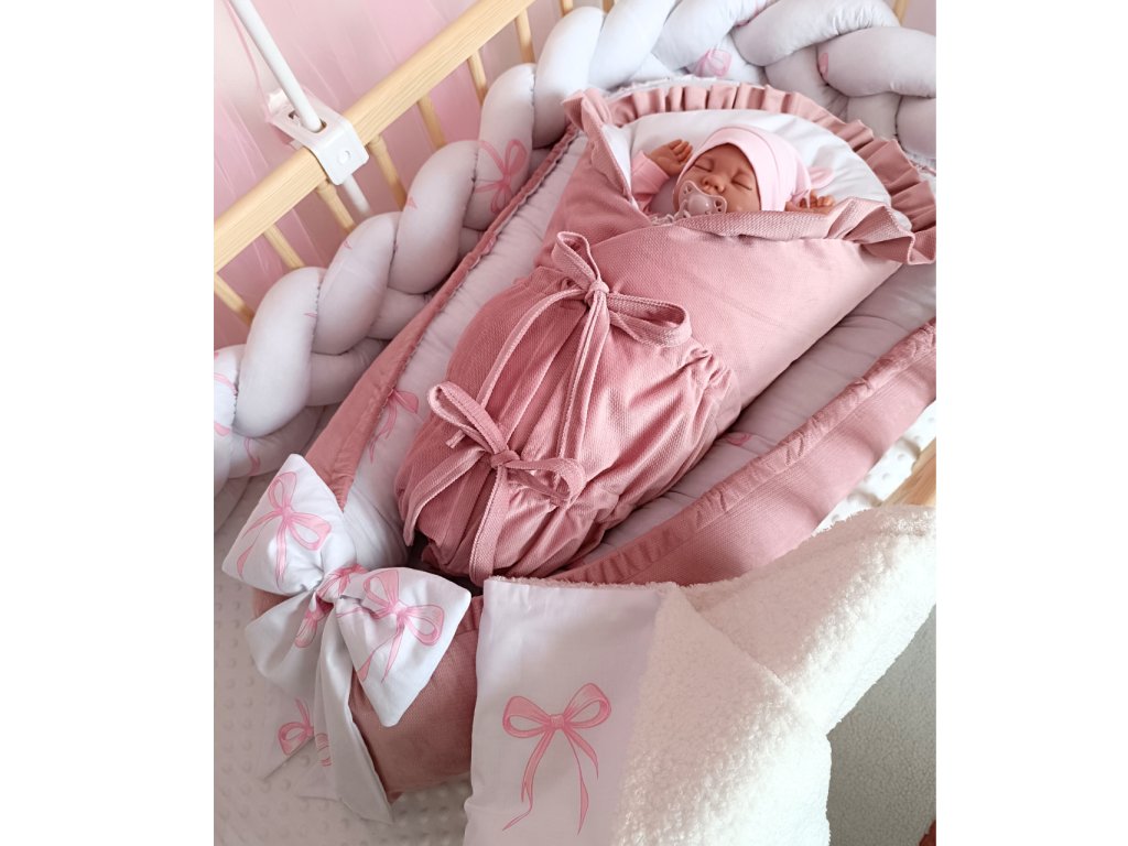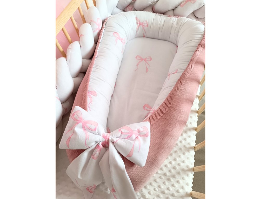 Hniezdo pre bábätko – obojstranné, s veľkou mašľou a ružovými detailmi, ktoré dieťatku poskytne pocit bezpečia,