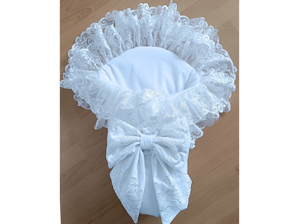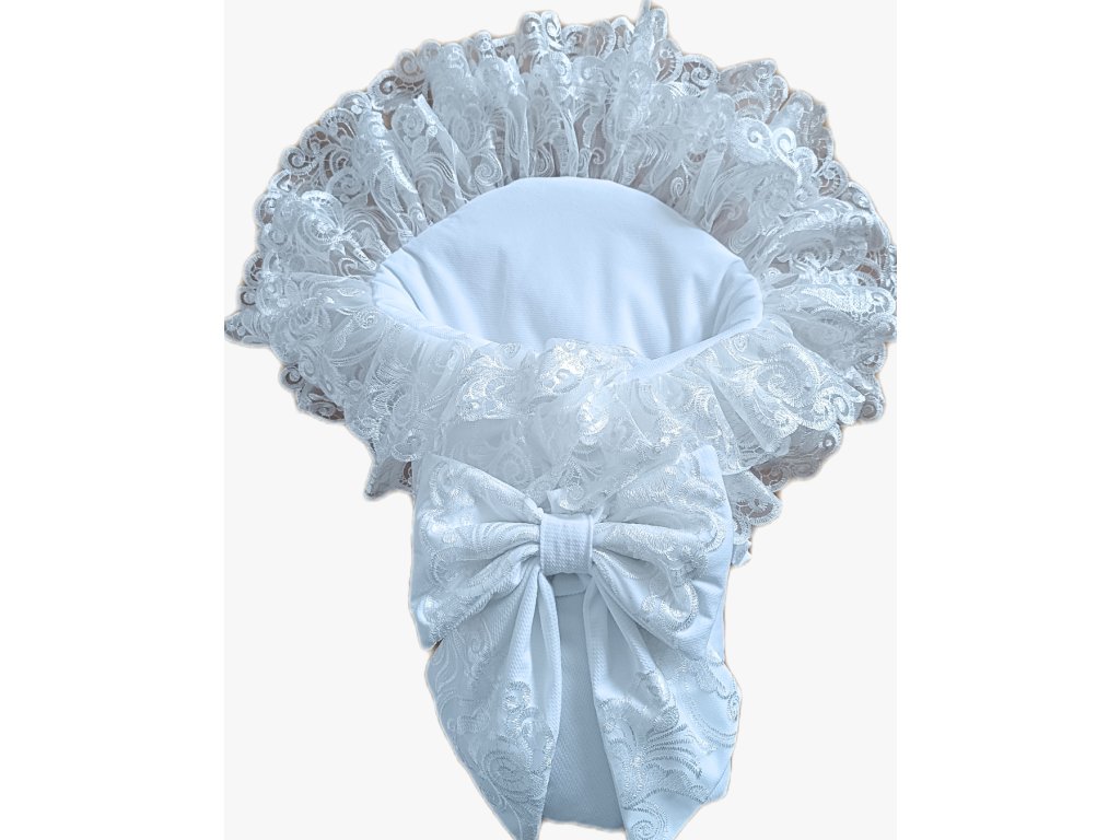 Zavinovačka na krst biela s vyšívanou čipkou a mašľou s výšivkou Little Fantasy