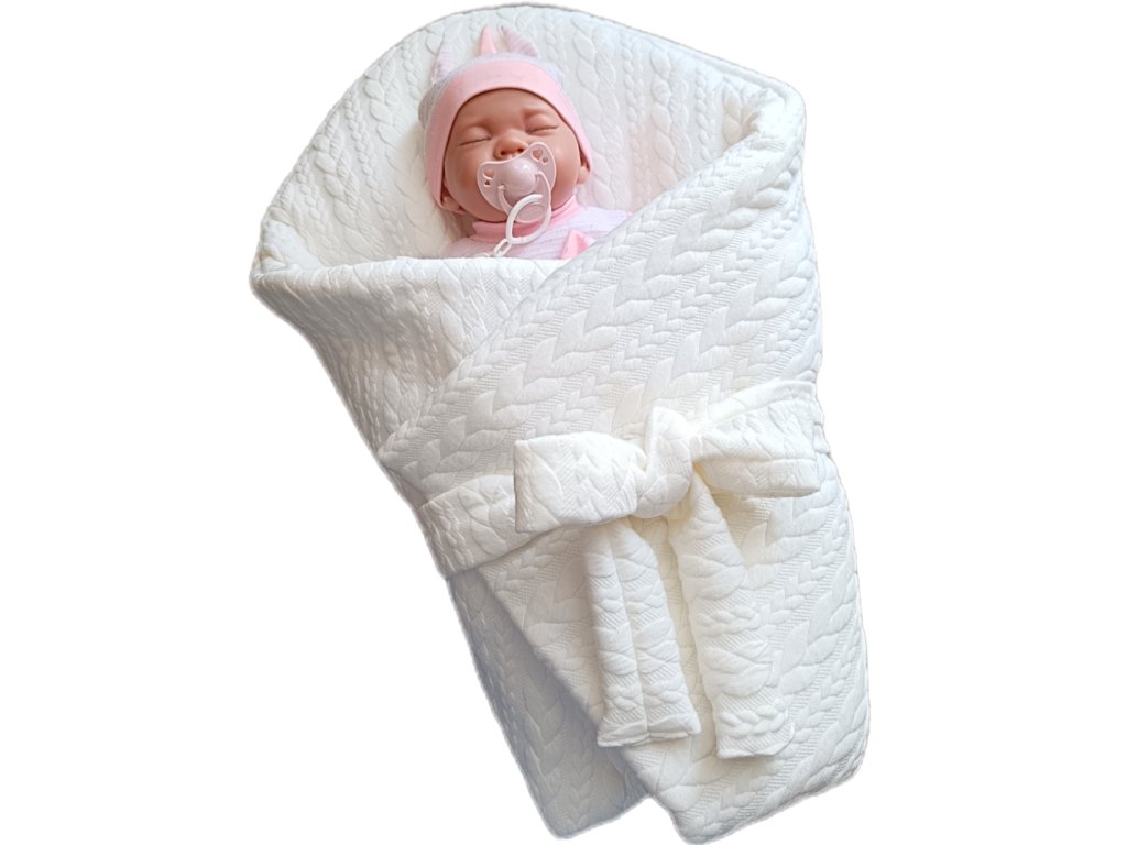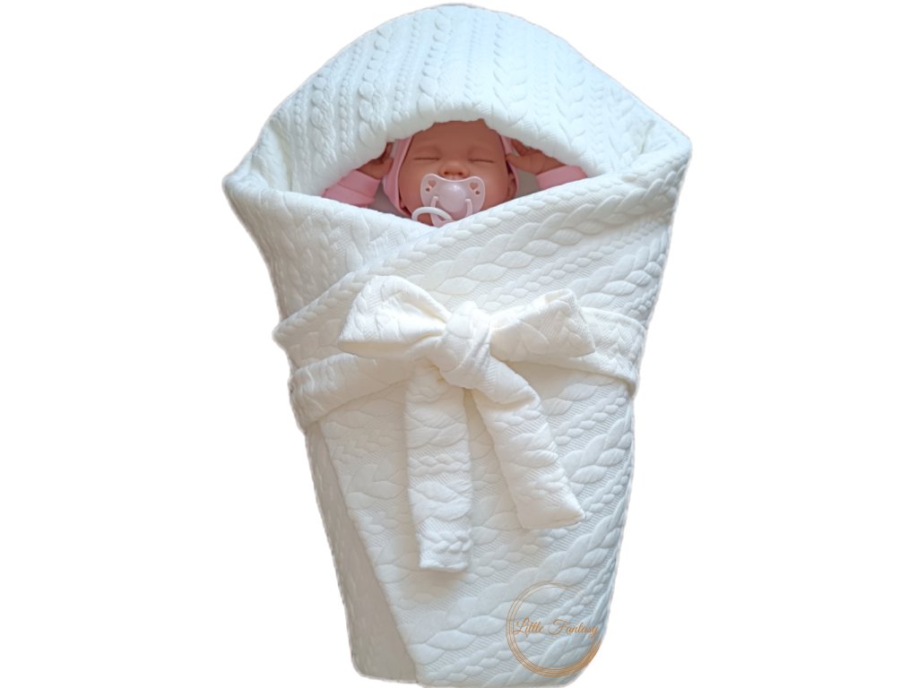 Zavinovačka pre bábätko je navrhnutá tak, aby poskytovala maximálne pohodlie a pocit bezpečia. Pletenina s vrkočikovým vzorom je hebká a priedušná, šetrná k citlivej pokožke dieťatka. Praktická mašľa umožňuje jednoduché a bezpečné viazanie, takže bábätko zostane pohodlne zabalené.